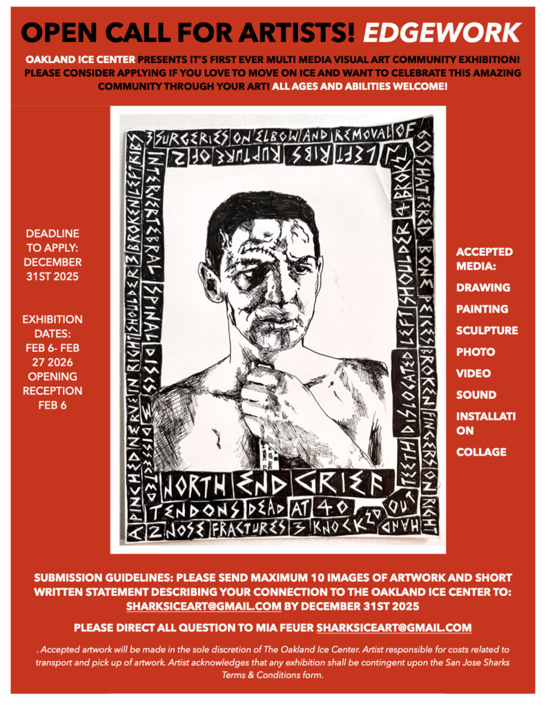 OPEN CALL FOR ARTISTS: EDGEWORK: OAKLAND ICE CENTER’S INAUGURAL COMMUNITY ART EXHIBITION. OPENING FEB 6 2026 CURATED BY MIA FEUER