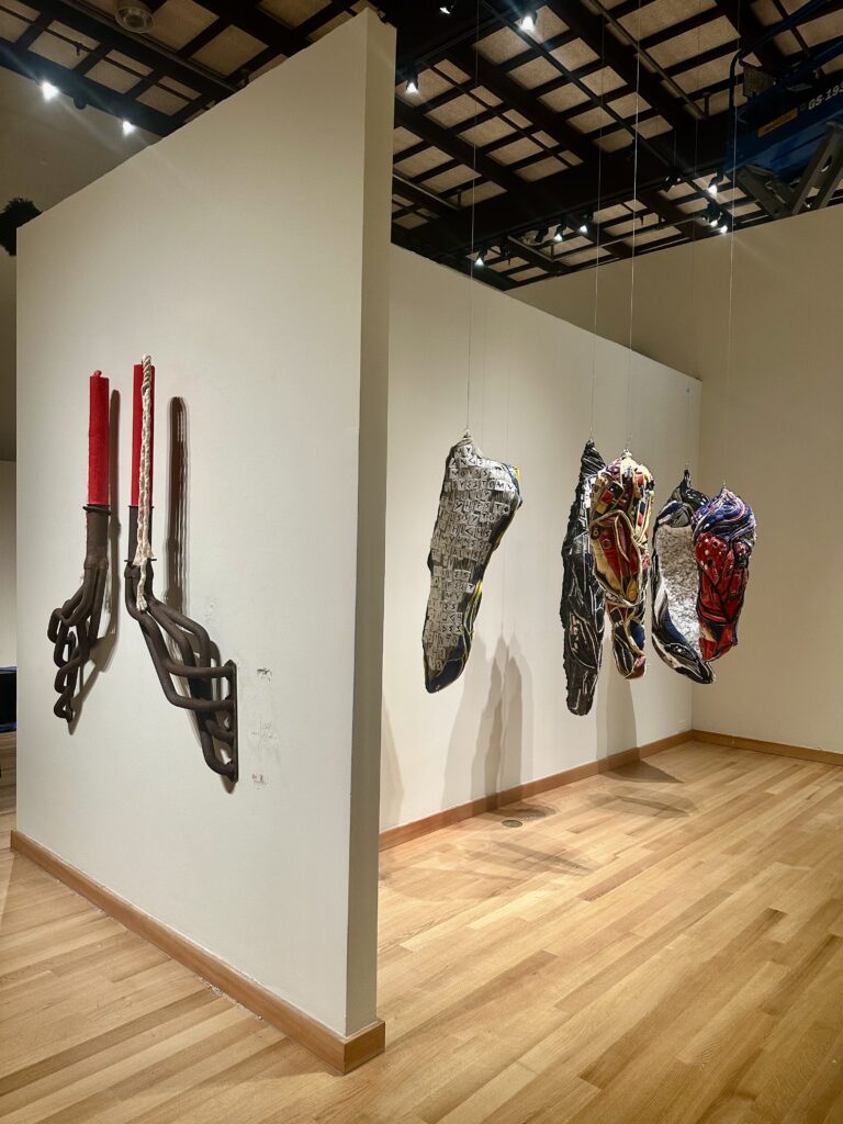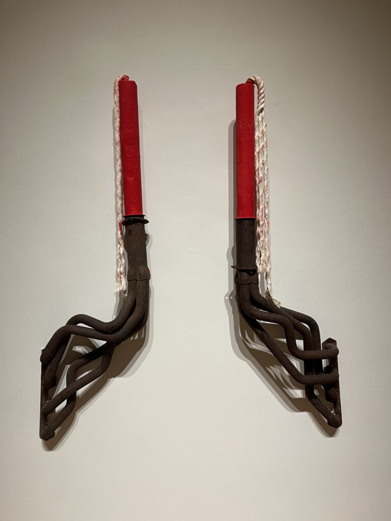 discarded exhaust intake manifolds, red wax, wick