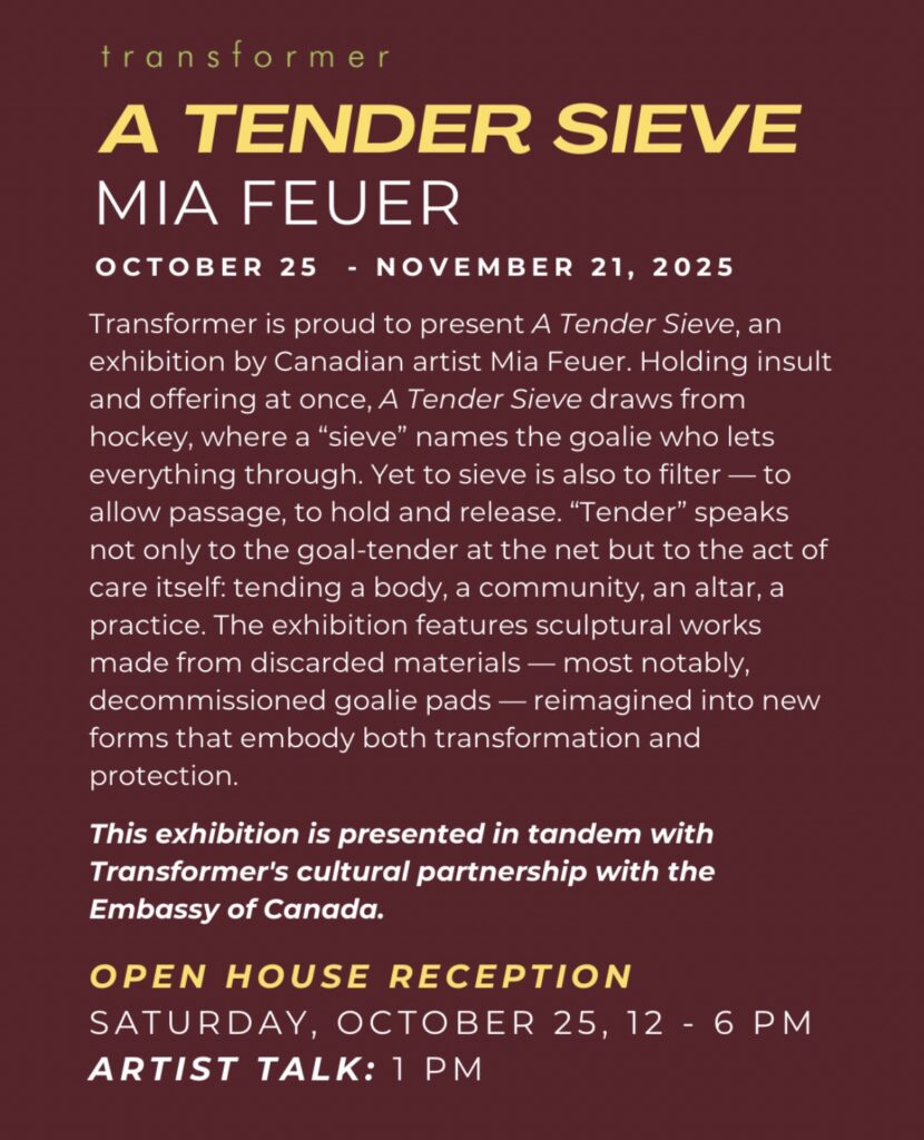 A TENDER SIEVE: solo exhibition of new work: TRANSFORMER GALLERY, WASHINGTON DC. OPENING OCT 25 2025. IN COLLABORATION WITH THE EMBASSY OF CANADA